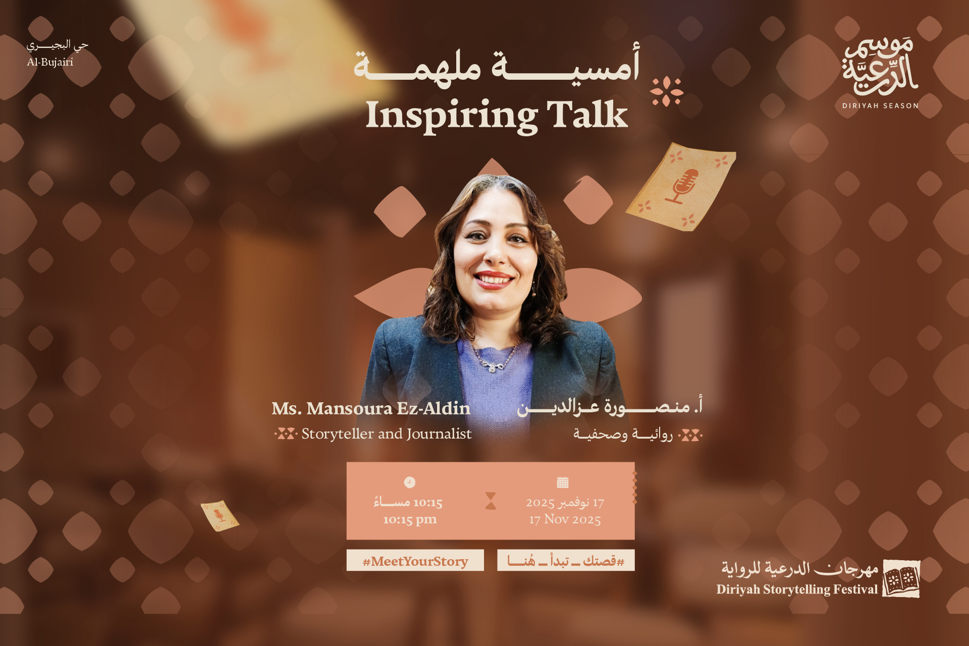 المتحدثة: أ. منصورة عزالدين لغة الجلسة: العربية تتناول هذه الجلسة كيف يتجاوز الأدب الحديث الحدود ليصل بين العوالم واللغات والهويات. تتأمل الروائية المصرية منصورة عزّ الدين دور السرد في بناء الجسور بين التجارب الثقافية وإعادة تخيّل مفهوم الانتماء في عالمٍ تتشابك فيه الهويات. من خلال أعمالها، تناقش أسئلة الهوية والهجنة الثقافية والحدود المائعة بين الذاكرة والخيال، لتكشف كيف يتحول السرد إلى جسرٍ يصل بين الذاتي والإنساني.